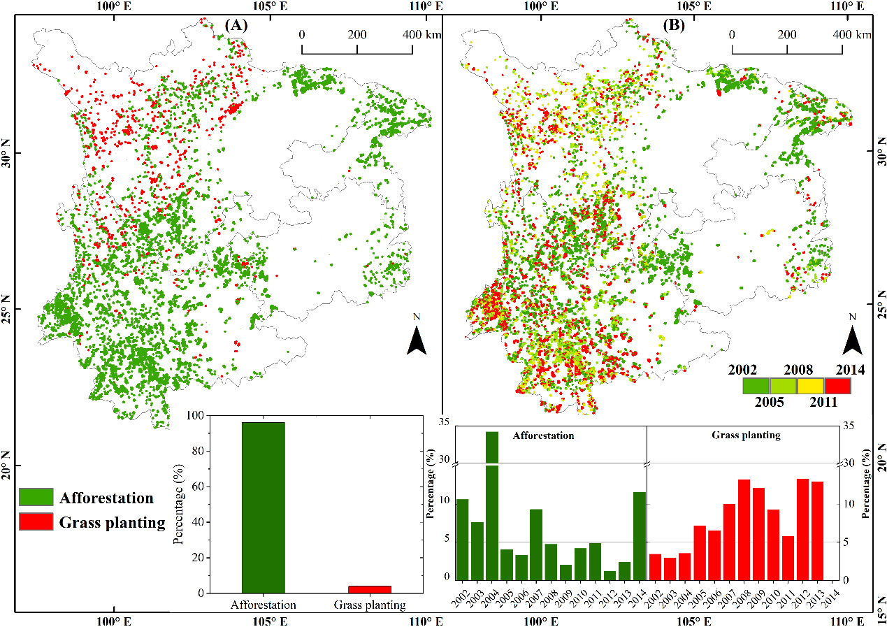 2 20012015年间西南地区生态恢复工程时空动态