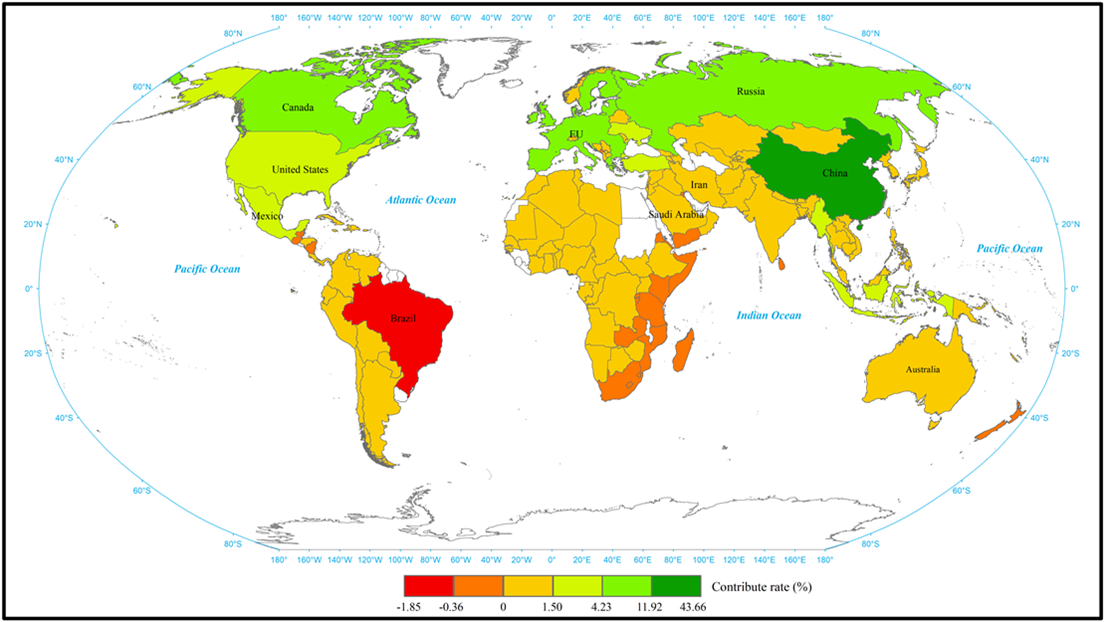图3 全球喀斯特生态系统GPP动态国家尺度贡献率