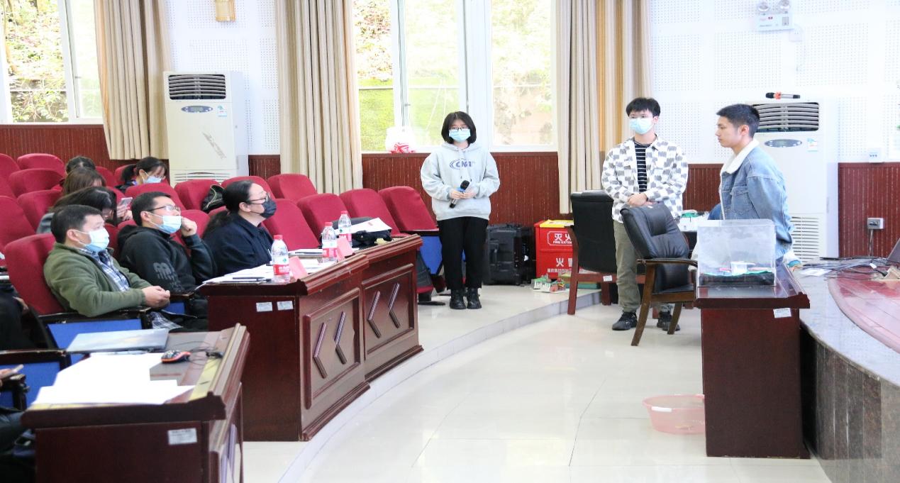 评委老师对各小组展示的地理模具也提出自己的疑问和看法。选手们面对评委老师的提问时,从容不迫地说出本小组模具的理论依据及其可行性。例如在提问刘永杰小组时,三位评委老师提出热力环流实验在中学教学中是否具有可行性的问题,刘永杰小组从实验所需材料及实验所需的时间两个方面进行回答,有力地证明了热力环流教具模型的可行性。