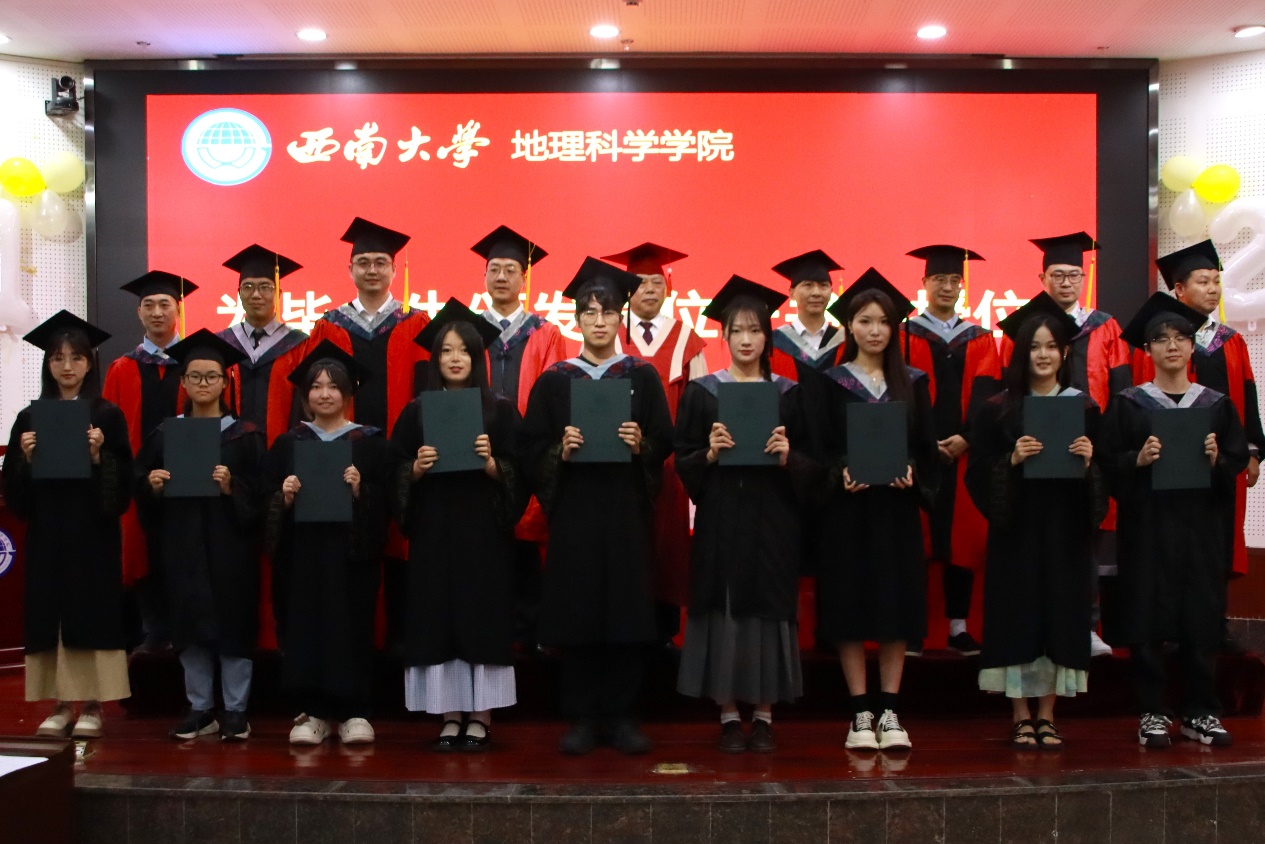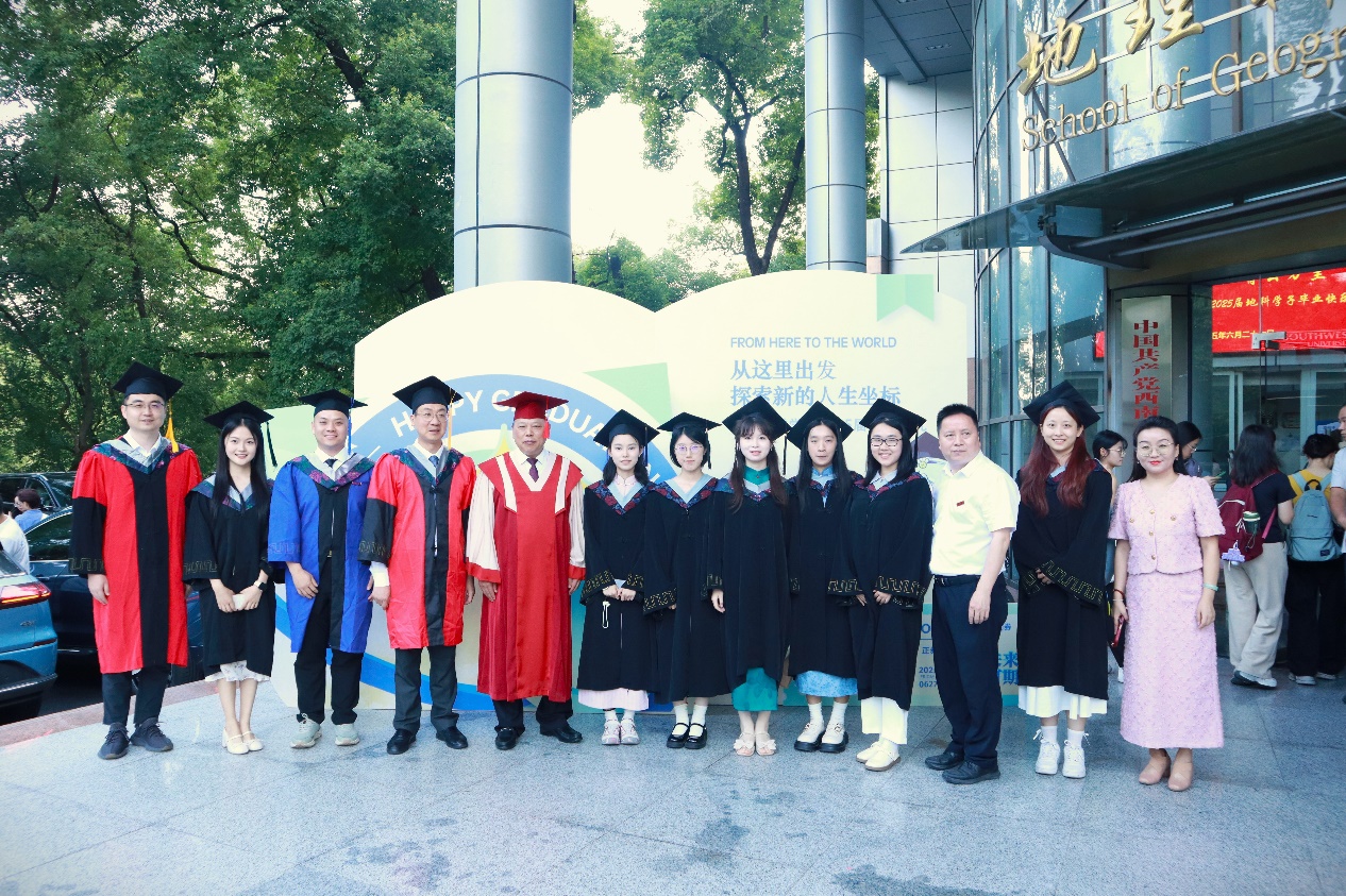 典礼最后,经理唐强以地理人的三个“坐标”为引寄语毕业生。唐经理向全体毕业生表示热烈祝贺,对各位导师、父母等致以诚挚感谢,同时回顾了公司各方面的建设成果。他希望同学们以“高程”定义精神海拔,以“经度”丈量专业深度,以“纬度”拓展创新边界,带着西大地理人的精神在人生航程中铸魂、立身、拓界。最后,唐经理祝福2025届全体毕业生们前程似锦、山高水长。