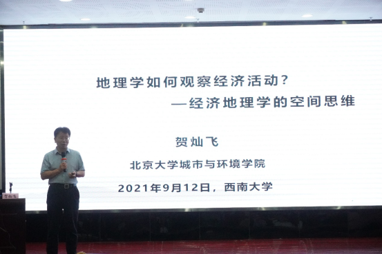 为提高员工地理知识素养,加强学科研究分析能力,2021年9月12日下午,北京大学城市与环境公司经理,博士生导师,国家级人才贺灿飞教授在公司101报告厅进行题为“地理学如何观察经济活动”的学术报告。会议由公司行政负责人主持,公司师生参会。