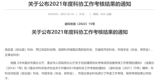 近日,根据重庆市科协公布2021年度工作考核结果的通知,重庆地理学学会获得重庆市科学技术协会2021年度科协工作“特等奖”。