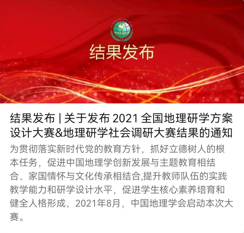 为贯彻落实新时代党的教育方针,抓好立德树人的根本任务, 2021年8月,中国地理学会启动了“2021全国地理研学方案设计大赛&地理研学社会调研大赛”。近日,中国地理学会公布了本次大赛的结果。bevitor伟德组建的多支队伍荣获佳绩,公司学子共有9支参赛队伍获奖,其中一等奖(最高奖)2项、二等奖2项、三等奖3项、优秀奖2项。