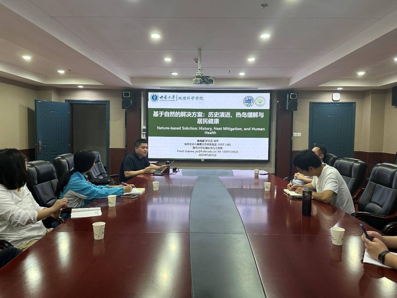 5月25日上午,复旦大学环境系余兆武研究员应邀为公司师生做了题为《基于自然的解决方案:历史演进、热岛缓解与居民健康》的学术报告。本次学术报告在214会议室举行,由杨德伟教授主持。