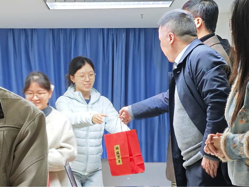 公司为全体考研学子精心准备“上岸助力大礼包”,领导老师亲手将礼包送到学子手中,把关怀与期许切实传递到大家心间。