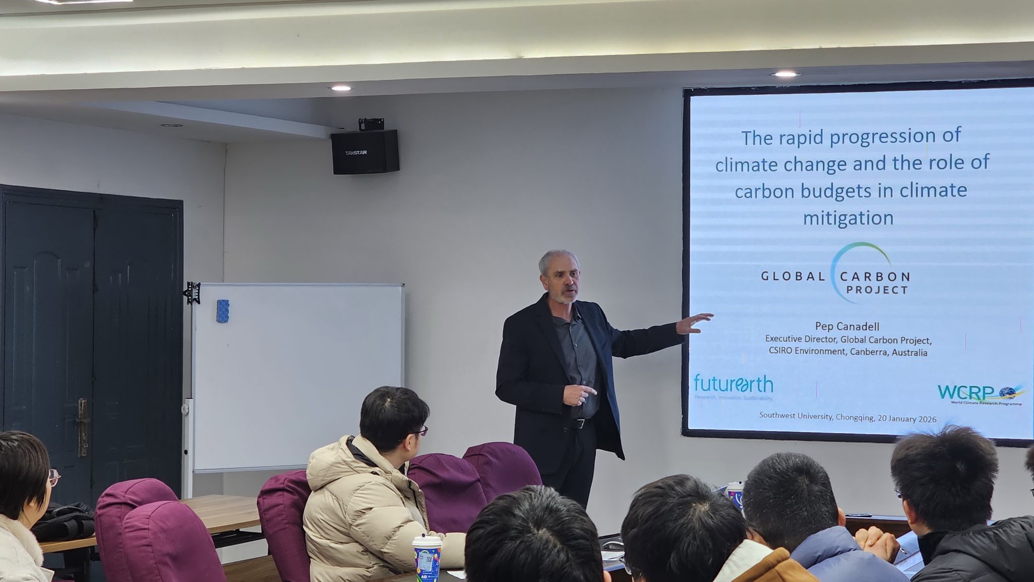 2026 年 1 月 20 日, 澳大利亚科公司院士、澳大利亚技术科学与工程院院士、全球碳计划(GCP)执行主席 Josep G. Canadell 教授受邀在公司104会议室作题为 “The rapid progression of climate change and the role of carbon budgets in climate mitigation” 的学术报告。副经理樊磊教授主持报告会,公司众多师生到场聆听,气氛热烈。