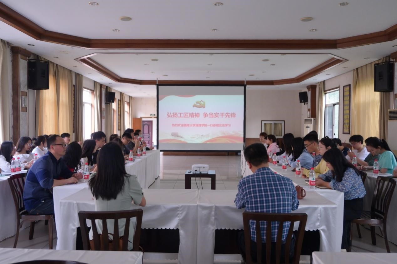 5月12日,胡乐副书记与研究生导师杨勋林教授、班主任孙钰霞老师带领自然地理学与第四纪地质学研究生支部和本科生第一党支部师生赴中国石油重庆气矿地质研究所开展“弘扬工匠精神,争当实干先锋”主题党日活动。中国石油重庆气矿地质研究所党委书记庞宇来、地质技术所副所长徐姁、科技信息室主任李爽、科技信息室副主任杨璟出席活动。活动围绕如何提升就业质量,推动人才培养提质增效等问题进行专项调研,积极展开交流研讨。