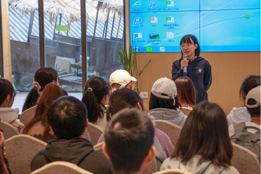 之后,实习队伍来到了东升村游客接待中心,观看了东升村的宣传片,更全面地了解东升村的发展状况。播放完宣传片,东升村第一驻村书记杜晓睿亲切又耐心地解答了同学们的各种疑问,介绍了二轮土地承包、“三变改革”、东升村发展优势、与村民有效交流途径等情况。交流现场气氛热烈,同学们踊跃提问,收获满满。答疑结束后,全体师生在杨经理的带领下向杜书记和喻老师的热情接待、耐心解答表示了诚挚的感谢,并在东升村老同志的带领下,学唱了东升村村歌。